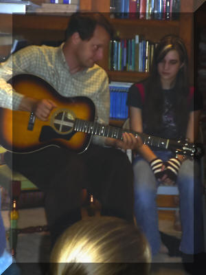 The best part, agreed upon by most of the attendees, was the dancing. With a shortage of boys, girls paired up with girls, or grabbed a boy before they fled. Mr. Hinrichs described techniques for the boys to ask a girl to dance, which the guys begrudgingly carried out. Before each new dance, Mr. H together with Mrs. Hinrichs demonstrated what to do, and we all participated eagerly. Cassie Atkinson accompanied Mr. Hinrichs on a few of the dances, but otherwise joined in with the rest of us, while Mrs. Hinrichs took up Cassie’s guitar and played alongside her husband. And we danced far into the night… okay, just until 10:00pm. J Before we were dispersed, Mr. Hinrichs led us in a round of Dona Nobis Pacem, and the harmonious singing of Angels We Have Heard On High and Fairest Lord Jesus.