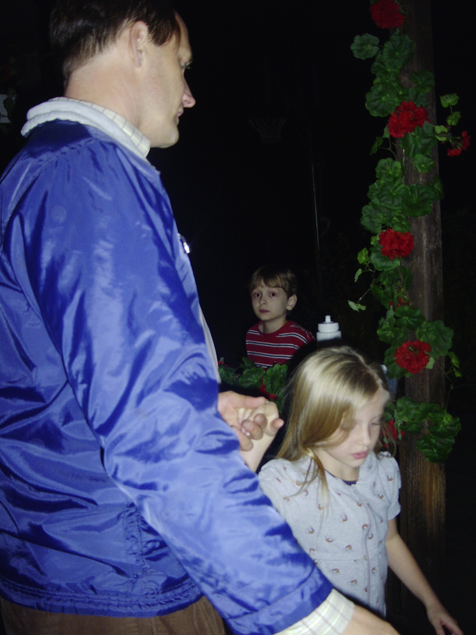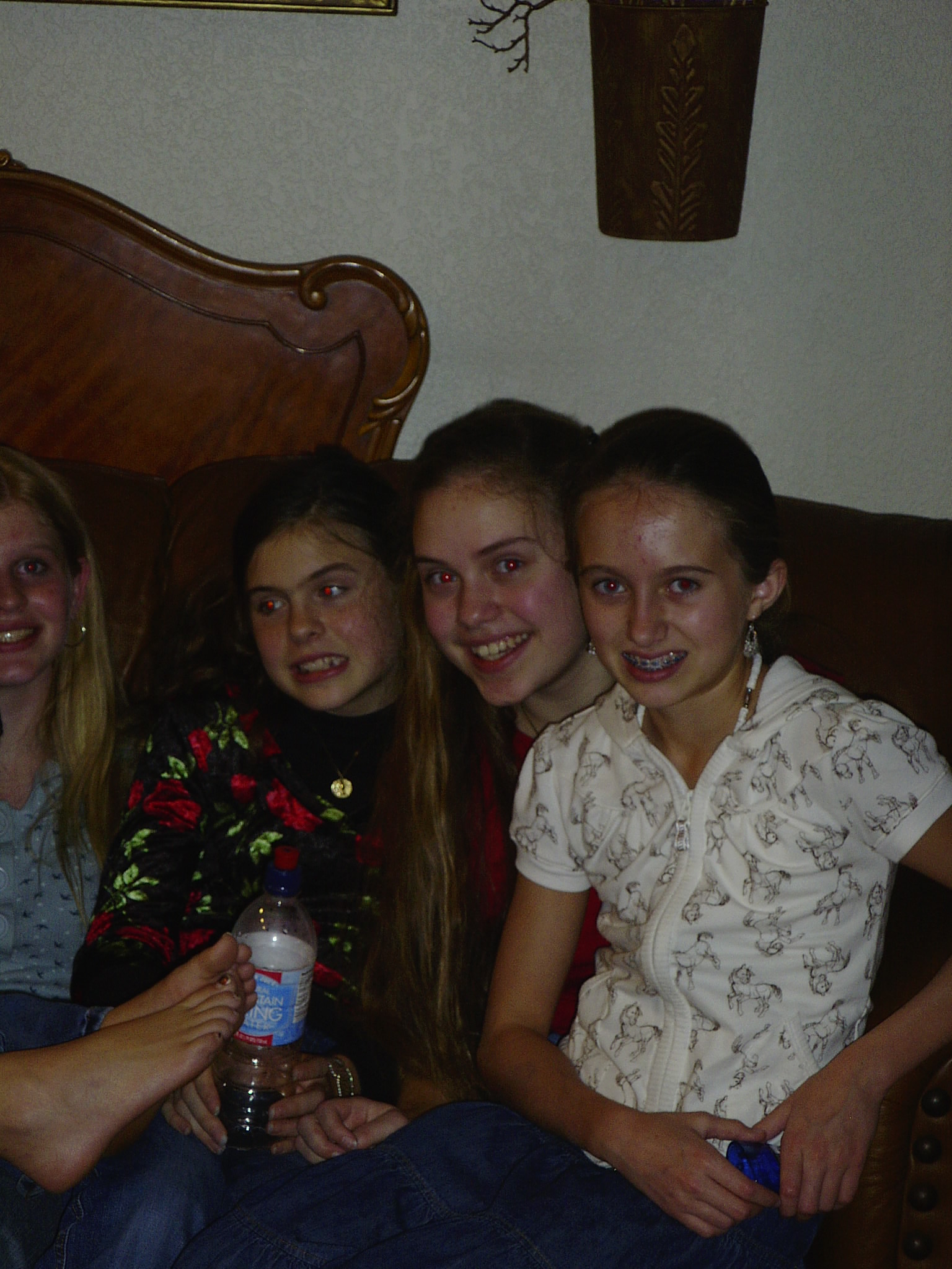 After a decent amount of time to have our pizza and run around a bit (the boys actually let us play tag and capture the flag with them!), we went in the house for the movie. Though Mr. Hinrichs had initially planned to play “Babbett’s Feast”, he decided to instead play “Much Ado About Nothing”, because many of the students that had been in the play the day before had not seen the movie. The movie is hilarious in most parts, and sad in others, and brought out the meaning of many of the lines that had been spoken during the play, but hadn’t been understood. We also discovered that Mr. Hinrichs does a fantastic job of censoring. With pillow in hand, he would jump up and cover the screen during inappropriate sections, all the while describing the incredible thought that had gone into the making of the pillow, and showing us how wonderfully the colors and stitching worked together. We could continue the movie when he would peek at the screen and announce it was all safe. J