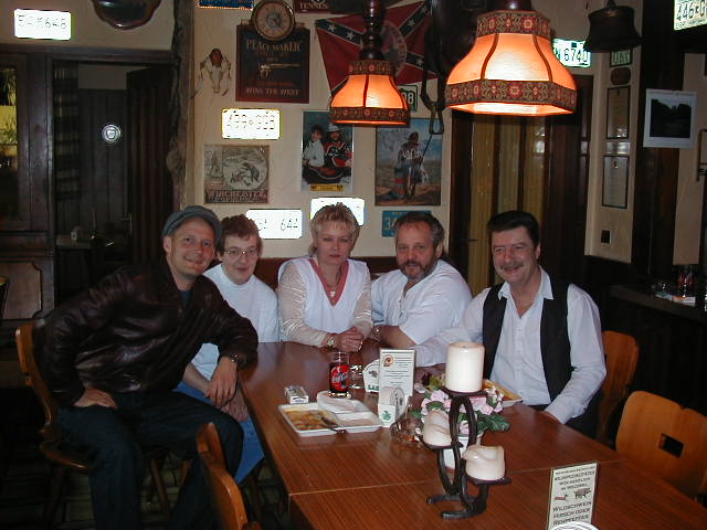 Mr. H. with our favorite cleaning lady, Dieter's wife Karin, Dieter, and our favorite server Rolf, who is fluent in Spanish.
