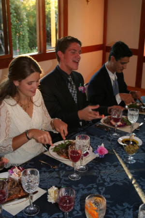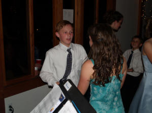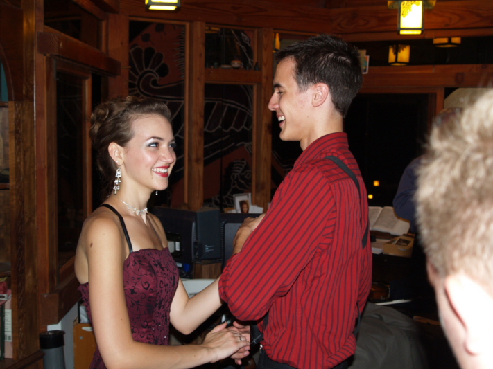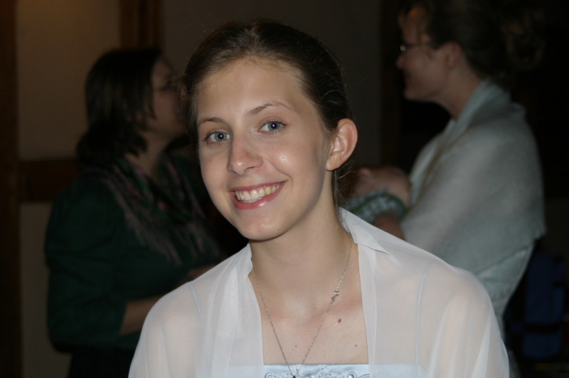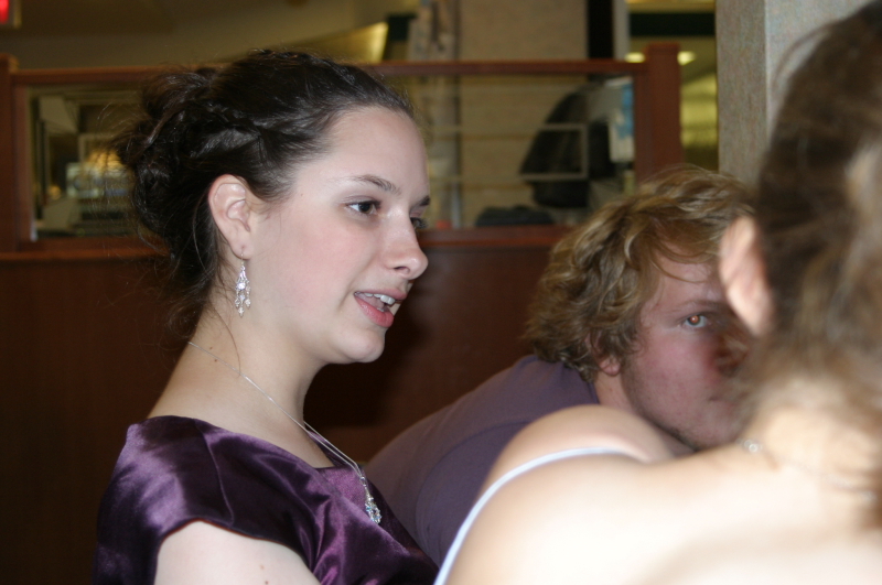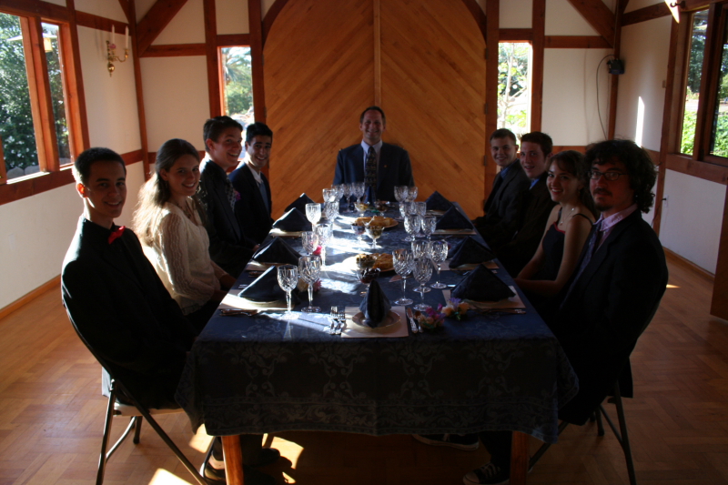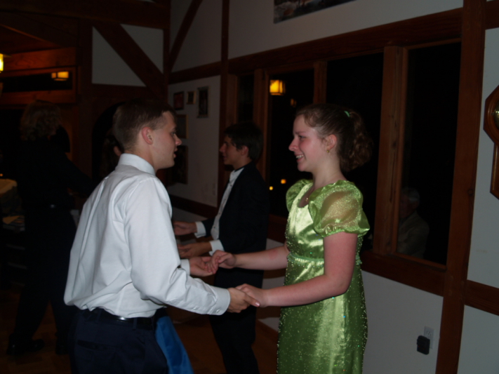 Like all the mornings, this began with paper presentations. Jensen Near (Mission Impossible), Frances Pedraza (Bread of Life) and Jonathan Lann (The Forms of Justice and its Effects on Government) did wonderful jobs (as did all the GBT V students) reading their papers and answering questions. After lunch, the young men and ladies rushed home to prepare for the ball, while the actors in the Metamorphosis, and those participating in the recital unfailingly slaved away until 3:00 J… from 4:00-6:00 most students arrived for portraits, shot by our ETS (Extremely Talented Semi-professional) photographer, a.k.a. Mr. H. Finally, all the ETS students arrived in the Hall by 7:00. The men were magnificently handsome and the women, divinely beautiful, as they stood listening to Mr. and Mrs. Hinrichs (who also looked wonderful) read the letters to the young gentlemen and ladies. With all said and done, the musicians took their places as the young men asked the various ladies in the ETS bouquet of flowers to dance the Grand March with them. Thus began the night! Shortly following was the Virginia Reel, St. Andrew’s Cross Reel, Gay Gordon, Patty-cake Polka, Waltz, Spanish Waltz (my favorite!), the Swing, and two Irish dances. After the dancing we all gathered to sing. Being thoroughly invigorated from the dancing and gaining our second wind, some of us students spent the rest of the night at Denny’s. Once arrived at the restaurant, all air of grace put on during the ball wore off as we laughed, drank milk shakes and indulged ourselves into all kinds of foolishness J. By the time we dragged ourselves home, the morning hours had already begun…