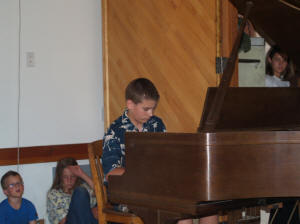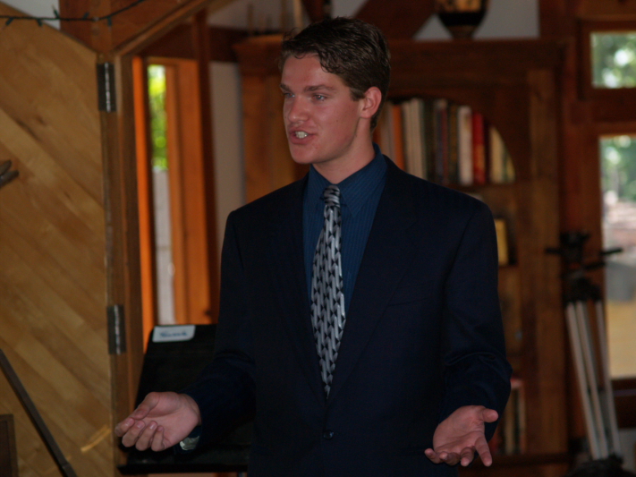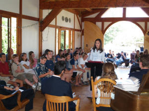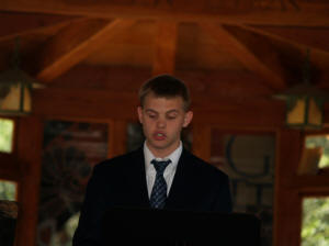 Despite our short night sleep, we all managed find ourselves back at the Hall at 9:00am (more or less). All attention was on Lauren Lucia, as she presented the final GBT V paper, A Cry for Justice. It was then time for debate. Mr. H gave the resolution: "Creon's actions regarding the body of Polynices were wholly unjust and indicative of the tyrannical abuse of his office". He then divided the GBT I and III students into two categorize: pro and con. The GBT V students acted as Jury. Each team had fifteen minutes to come up with an opening speech, which was presented by Leila Pedraza and Twyla Elhardt. Robin Scofeild and Meghan O’Brien followed with the rebuttals and everyone participated in the Stand and Shoot. Acting as Jury, the GBT V student took their places in the center of the room to decide upon a winner. Francis Pedraza, the lone holdout in support of the pro, finally gave into the arguments of the con (and the pangs of hunger). Shortly following lunch, we all gathered back into the Hall for the recital. The participants for this event were Sarah Aymin and Zachary Lucia (Concerto No. 3 in GM), Grace Marie Lambert (Reciting, Women and Children First), Brett Criss (Sonatina in CM, 1st Movement), Emily Bell (Sonatina in C OP 39 #1), Jono Aymin and Rachelle Kampen (Ciaccona), Nathanael and Michael Kampen (Outside), Nathanael Kampen (Skies of Grey), Annie Sierra and Tim Jackson (Concerto No. 5, 1st Movement), Zachary Lucia (Iollster Dance), Justin Helland, Jensen Near and Michael Taylor (Black Orpheus), Rebekah and Jonathon Keller (Les Pins de Charlanes), Colin and Emily McDonald (Wonderful Grace of Jesus), Rachelle Kampen (Scherzo in Bb, OP 31 #2), Michael Taylor (Violin Concerto in EM, 1st Movement), Amy Scofield (Ballet/Lyrical Dance, Deliver Us), Amanda Johnson (Lyrical Dance, Closer to You). Mr. Hinrichs, Mr. Elhardt, Elizabeth Aymin, Katie Aymin, Peter Elhardt, Zach O’Brien also played last minute pieces. We were very pleased to have a guest play at our recital, Ray She, who is a Julliard graduate and very accomplished pianist. At 7:00, the lawn in front of the hall was speckled with chairs and picnic blankets as the various families gathered to watch ETS Theater put on the Metamorphosis! As the sun lingered on the horizon, hoping to catch a final glimpse of the earth before smothering it’s light in the ocean, the actors emerged from behind a velvet curtain. The play had begun. The actors involved included: Chelsea Nygaard, Daniel Parker, Zack Lucia, Francis Pedraza, Elizabeth Aymin, Amanda Johnson, Jonathan Aymin, Sarah Aymin, Justin Helland, Leila Pedraza, Robin Scofield, Tessa Larson, Jon Keller, Emily Bell, Katie Palmer, Lauren Lucia and Meghan O’Brien. After the play we discussed the views portrayed in the various myths presented in the play, as well as compare it with last years play The Great Divorce. A special thank you was given to Amanda Helland, who directed the play, for the amazing job she did! As the night came to a close, Mr. Hinrichs had the GBT V student come up, so he could say a final good bye. He also presented them with beautiful and intricate wood ornaments